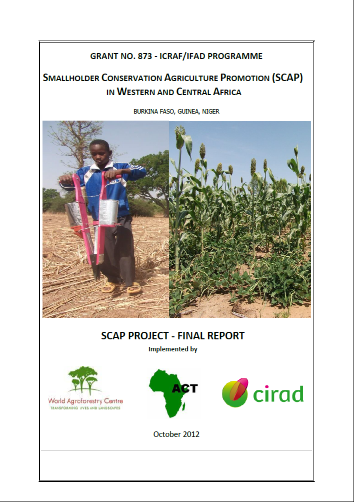 This report presents the views of the project implementation team on the performance and achievements of the SCAP project (GRANT NO. 873 - ICRAF/IFAD), which has been operating in Burkina Faso, Niger and Guinea since July 2008.